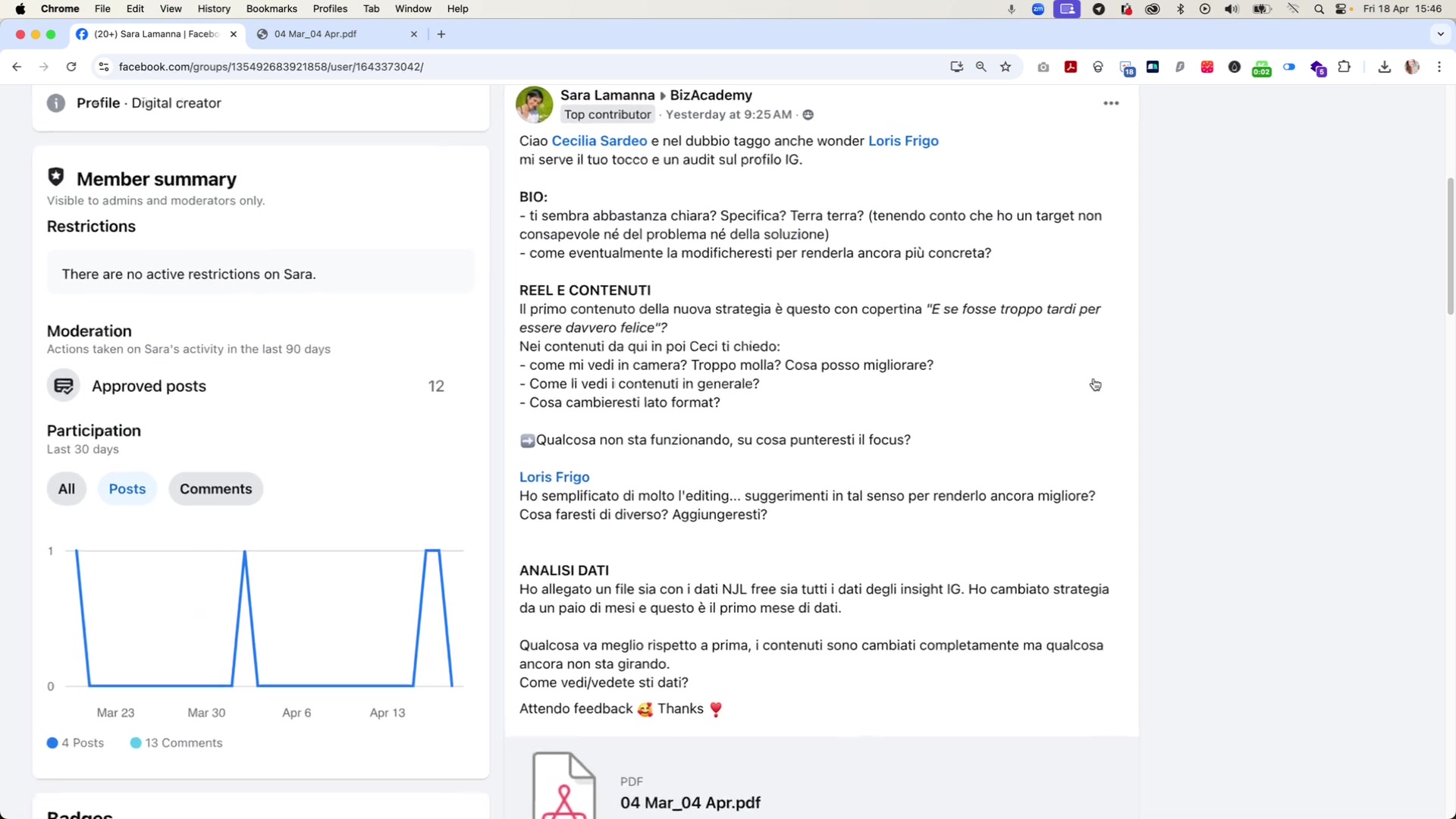 Esempio reale di feedback personalizzato di Cecilia